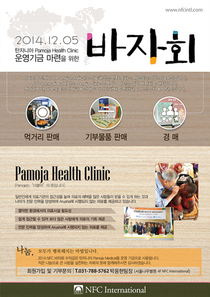 오는 5일 관절척추 치료병원인 서울나우병원에서 탄자니아 '파모자 클리닉(Pamoja Health Clinic)'을 후원하기 위한 바자회를 개최한다.