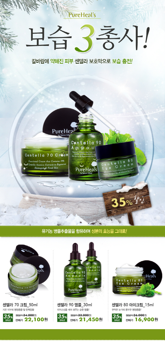 한편 퓨어힐스12월 센텔라 3종으로 '피부 보습 충전' 이벤트는 12월 1일부터 12월 31일까지 약 한 달 동안 공식 쇼핑몰(www.pureheals.com)에서 보다 자세하게 확인이 가능하다.