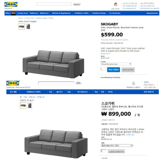 이와 함께 한국 이케아는 해외보다 비싼 가격에 판매중이어서 논란이 되고 있다. 예컨대 '후르달 침대'의 경우 한국에서 75만9000원에 판매중이지만 미국에서는 549달러(약 60만원)에 판매되고 있다. 또 '스코카뷔' 3인용 소파도 한국에서 89만9000원, 미국에서는 약 66만원에 각각 거래되고 있다. 일부에서는 한국 판매 제품의 가격을 다른 나라보다 최대 1.6배까지 비싸게 책정했다는 주장도 나오고 있다. 이를 두고 이케아가 한국 소비자를 '호갱(어수룩한 고객)' 취급한다는 비난까지 제기되고 있다.