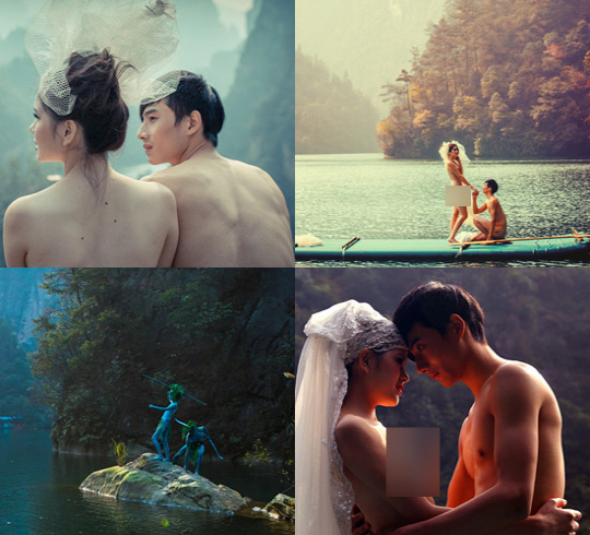 중국에서 한 신혼부부가 나체로 촬영한 웨딩 사진을 온라인에 그대로 공개해 논란이 일고 있다.