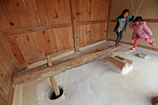 청송 영감댁에서 디딜방아 체험
