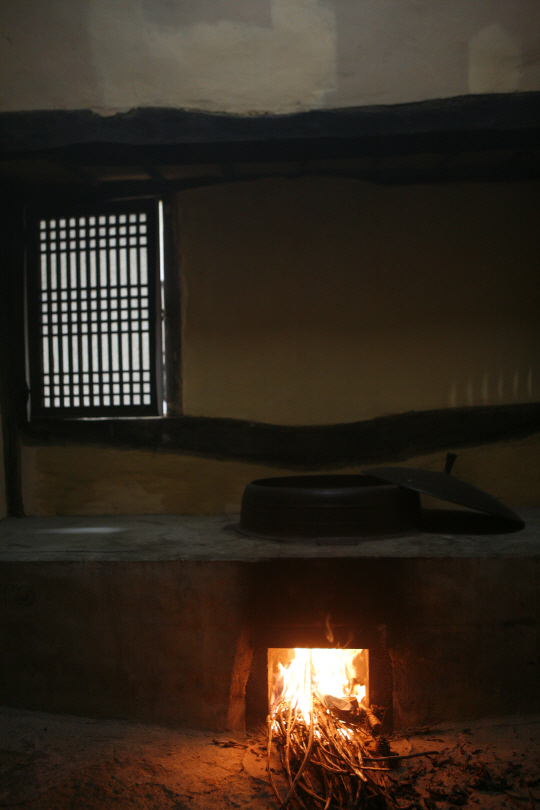 우구정가옥 의 굼불 때는 모습.
