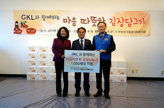 GKL은 2일 부산광역시 진구 종합사회복지관 에서 소외계층 겨울나기 지원 '마음 따뜻한 情 나누기' 행사를 실시했다. GKL재단이 전체 사업비를 지원한 이날 행사에는 김진세 부산본부장 등 GKL임직원 30여명을 비롯, 지역 내 기업과 봉사단체 등 10여 개의 단체가 함께 참여했다.