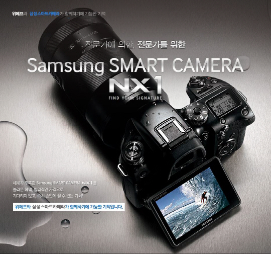 소셜커머스 위메프(대표 박은상 www.wemakeprice.com) 는 삼성전자와 손잡고 오는 29일까지 '삼성스마트카메라 NX1 기획전'을 진행한다고 밝혔다.