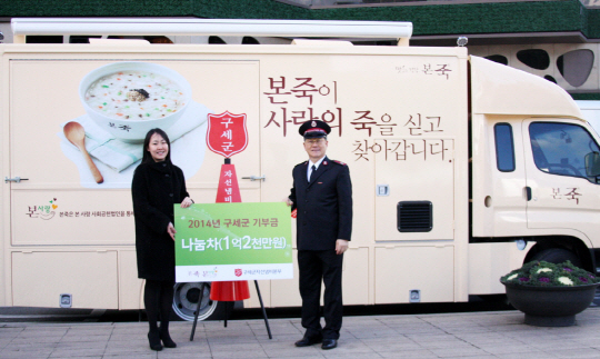 웰빙 죽 전문점 본죽이 '사랑의 죽, 본죽 나눔차'를 한국 구세군에 기증했다.