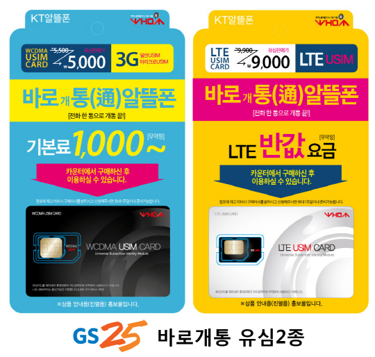 GS25는 유심2종 출시와 함께 업계 최초로 전화 한 통으로 1시간 내 개통이 진행되는 바로개통(通) 서비스도 선보인다.