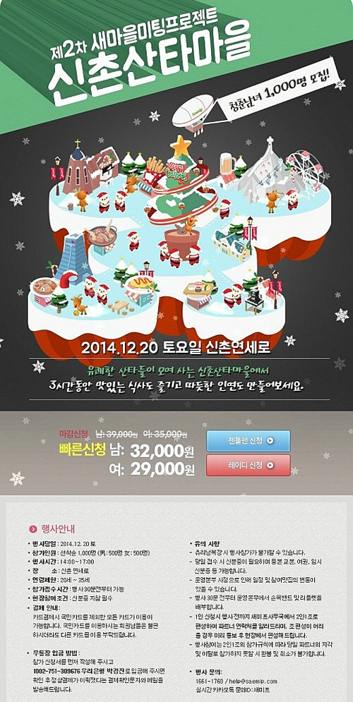 한편 '새미프 신촌 산타마을' 행사는 새마을미팅프로젝트 홈페이지(www.saemip.com)를 통해 신청할 수 있다.