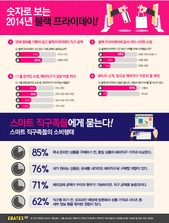 이베이츠 임수진 이사는 "2014년 블랙프라이데이 기간 동안 한국 소비자의 해외직구에 대한 관심은 폭발적 그 이상이었다. 소수 고객이 즐기던 해외직구에서 이제는 온라인 쇼핑의 대중적인 트렌드로 옮겨가는 모습이 분명하다"며 "이번 블랙 프라이데이 기간 동안 이베이츠의 매출은 10월 대비 2배 가량을 기록했으며 특히 11월 한 달 내내 매주 평균 25% 이상씩 상승하며 블랙프라이데이에 최고점을 찍었다"고 말했다.
