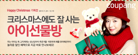 고객중심기업 쿠팡(대표 김범석, www.coupang.com)은 크리스마스를 맞이해 완구, 트리 장식, 여행권 등 크리스마스 관련 상품을 합리적인 가격으로 선보이는 '크리스마스 기획전'을 오는 19일까지 진행한다.