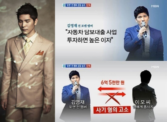 그룹 '포맨'의 전 멤버 김영재(34)가 지인들에게 8억여 원을 받아 가로챈 혐의로 불구속 기소돼 충격을 안기고 있다.