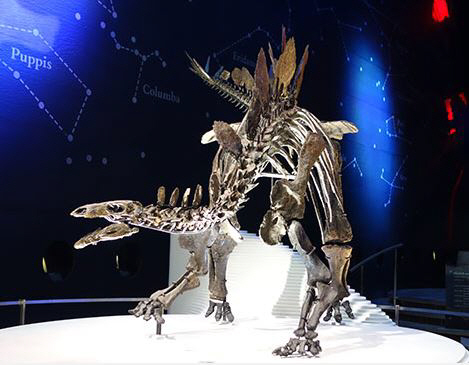 가장 완벽하게 복원된 공룡으로 알려진 이 스테고사우르스 화석의 주인공은 주라기 시대에 서식했으며 '지붕 도마뱀'이라는 뜻을 가지고 잇다.