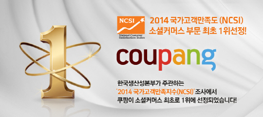 소셜커머스 쿠팡이 한국생산성본부가 주관하는 2014년 국가고객만족지수(NCSI) 조사에서 소셜커머스 부문 1위를 차지했다.