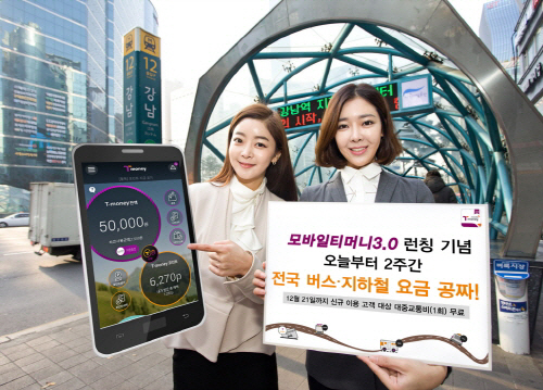 티머니(Tmoney) 발행사인 ㈜한국스마트카드(대표이사 최대성)는 모바일티머니 3.0 론칭을 기념해 대중교통비 무료 지급 이벤트를 오는 21일까지 실시한다고 밝혔다.