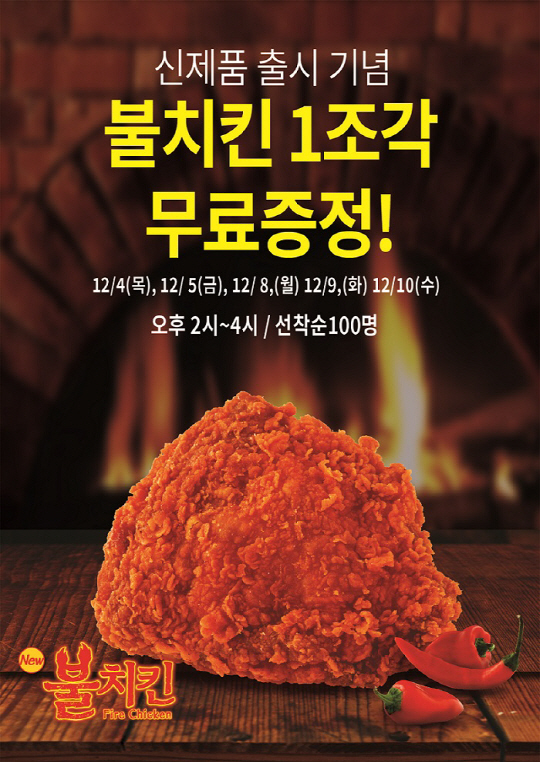 전국 120여 개 KFC 매장에서 오후 1시 30분부터 '당일 무료 시식권'을 선착순 100명에게 발급하며, 오후 2시부터 시식권 소지자에 한해 '불치킨'을 무료로 맛볼 수 있다. 행사 매장은 KFC 홈페이지를 통해 확인 가능하다.