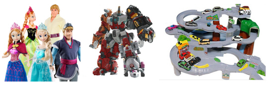장난감 선물로는 올해 상반기 최고 히트상품인 '노래하는 엘사 인형'(5만1800원)과 '스파클 인형'(2만9800원) 등 겨울왕국 캐릭터상품과 '스텝2 커스텀키친'(14만9000원)을 판매한다. 또 '카봇 펜타스톰'(9만6000원), '또봇 델타트론'(6만2900원), '바이클론즈 허리케인'(3만7900원) 등 로봇 장난감도 마련됐다. 이와 함께 해외직구 상품으로 '헬로키티 바비 메이크업 세트', '겨울왕국 로얄 드레스룸 콤보팩', '디즈니 미니돌' 등 해외 인기상품도 최대 52% 할인가에 준비됐다.