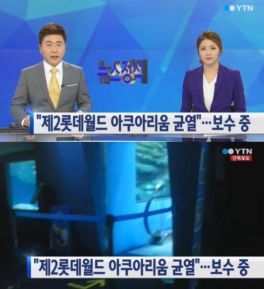 제2롯데월드 아쿠아리움 균열 발생했구나", "아쿠아리움 균열 발생한 제2롯데월드 관련 롯데건설 측이 안전에는 문제 없다고 전했네", "