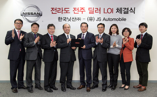 한국닛산은 판매 신장 및 고객 서비스 강화의 일환으로 전라북도 전주 및 강원도 원주 지역 판매를 담당할 딜러 사 2곳을 선정, 공식 딜러의향서(LOI, Letter of Intent)를 체결했다. 이들 딜러사는 2014 회계연도 안에 닛산의 전시장 및 서비스 센터를 오픈할 계획이다.