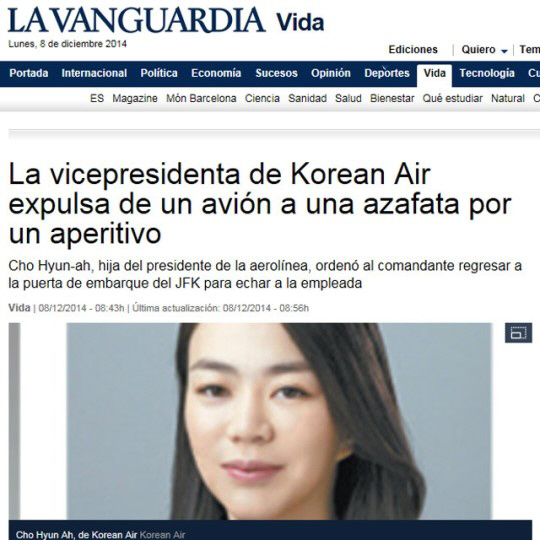 대한항공이 조현아(40) 부사장의 '땅콩회항' 논란에 대해 해외언론에서도 일제히 큰 이슈로 보도했다.