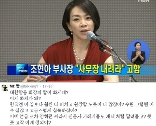 대한항공이 조현아(40) 부사장의 '땅콩회항' 논란에 대해 방송인 강병규와 진중권 동양대교수가 일침을 가했다.