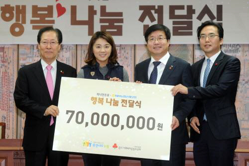 최나연 프로골퍼와 NH농협 손해보험이 수원시 아동복지시설과 저소득층 아동을 지원하기 위해 후원금 7000만원을 수원시에 전달했다.