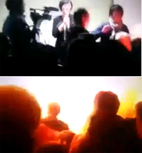 신은미 토크 콘서트 사고 당시 영상 모습. |