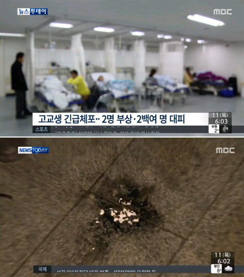 행사장은 순식간에 아수라장이 됐고, 관객 2백여 명이 긴급 대피했다.