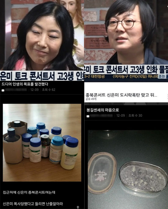 한편 많은 네티즌들은 "신은미 토크콘서트 황산테러범 대체 왜 그랬나", "신은미 토크콘서트 황산테러 예기치 못한 사건 깜짝 놀랐다", "신은미 토크콘서트 황산테러 계획된 범죄다", "신은미 토크콘서트 황산테러 술까지 마시고 왜"등의 반응을 보이고 있다. <스포츠조선닷컴>