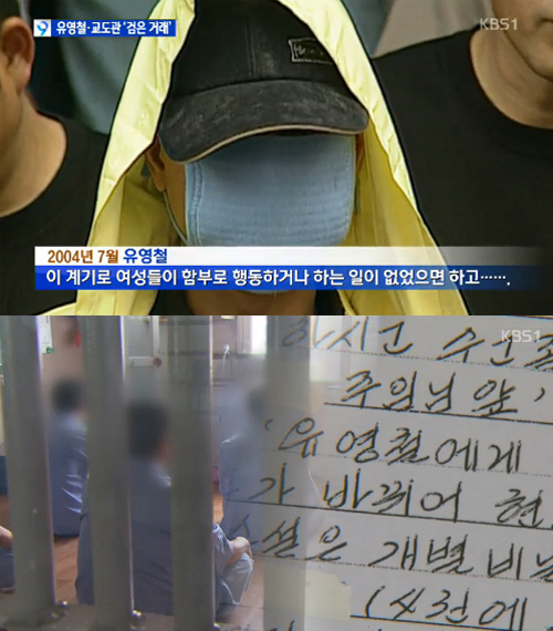 10일 KBS는 10년 전 연쇄살인 혐의로 사형선고를 받고 서울구치소에 수감된 유영철이 반입이 금지된 성인물을 받아보고, 이 과정에서 특정 교도관의 도움을 받았다고 보도했다.