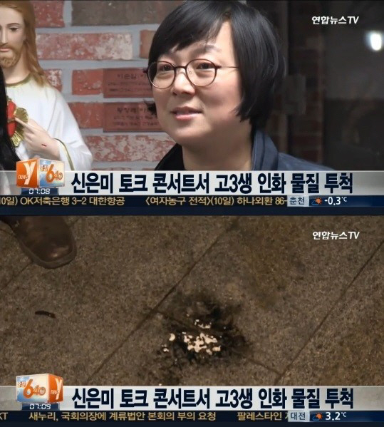 앞서 지난 10일 오후 8시경 전북 익산시 신동성당에서 열린 '평양에 다녀온 그녀들의 통일이야기-신은미·황선 전국순회 토크문화콘서트'에서 고등학교 3학년 오모군(18)이 인화물질이 들어있는 냄비를 가방에서 꺼내 번개탄과 함께 불을 붙인 뒤 연단 쪽으로 투척하는 사건이 벌어졌다.