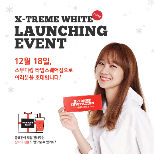 오는 18일 서울 영등포 타임스퀘어 스무디킹 매장에서 스무디킹 모델 공효진이 참석한 가운데 '공효진과 함께 하는 익스트림 화이트 크리스마스!' 이벤트를 개최한다.