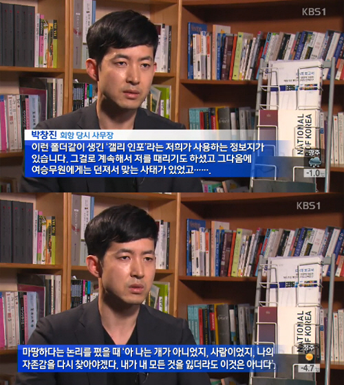 자존감을 찾고 싶다는 박 사무장은 "모든 잘못은 나와 그 비행기에 있던 승무원들의 잘못이었고, 그것을 지적한 것은 당연한 일이다. 그러므로 그들은 벌을 받아도 마땅하다는 논리를 폈을때 '아 나는 개가 아니었지, 사람이었지, 나의 자존감을 다시 찾아야겠다. 내가 내 모든 것을 잃더라도 이것은 아니다…'"라고 말했다.