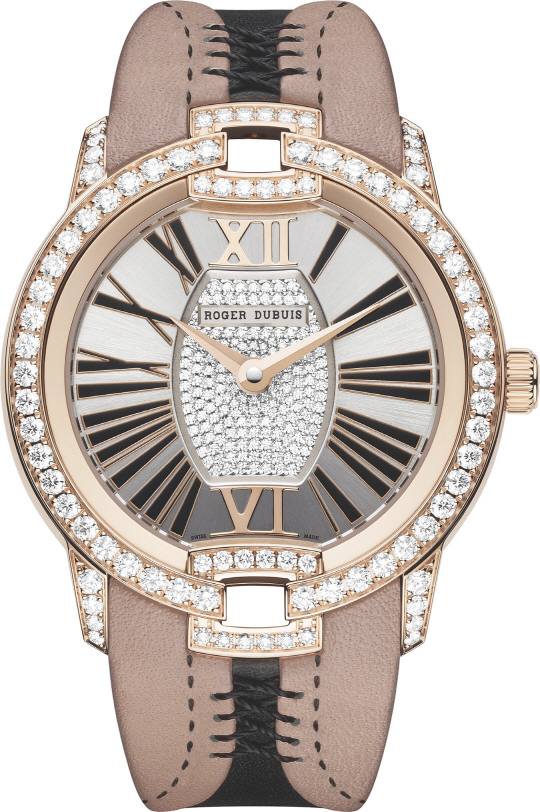 스위스 명품 시계 브랜드 로저드뷔는 얼마 전 '2014 아시아 국제 시계 박람회(Watches & Wonders)' 에서 매혹적인 벨벳 오트쿠튀르 3부작을 공개했다. 벨벳은 화려한 디바의 세계에서 영감을 받아 로저드뷔가 오직 여성만을 위해 선보이는 컬렉션이다. 여기에 현대적 느낌의 '팜므파탈'를 다양하게 표현한 오트쿠튀르 3부작을 올해 새롭게 선보이며 여성 전용 컬렉션을 더욱 강화하고 나선 것. 특히, 이 중에 벨벳 코트세트리 모델이 최근 한국에 입고되어 자신을 적극적으로 표현하며 존재감을 드러내기를 희망하는 루비족들의 손목을 뽐내줄 주얼리 워치로 각광받고 있다. 현란한 디테일의 코르셋 스트랩이 코르셋처럼 손목을 감싸주는 것은 물론, 정교한 블랙 레이스가 발레 슈즈를 연상시키는 스킨 핑크빛 송아지 가죽과 대비를 이루며 고혹적인 매력을 한껏 뽐내고 있다. 화려한 매력의 외관과 함께 파워풀한 오토매틱 무브먼트가 탑재 되어있는 최고의 스펙을 가지고 있다.