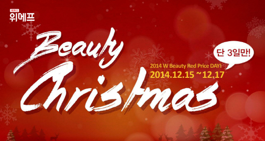 소셜커머스 위메프(대표 박은상 www.wemakeprice.com) 가 연말을 맞아 오는 17일까지 단 3일간 '뷰티페어'를 열고 인기 화장품을 파격적인 가격에 선보인다. '예쁘다 할인쿠폰'을 적용하면 추가 할인 혜택도 받을 수 있다.