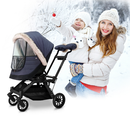 주행자를 위해 장착된 보온성 높은 핸드머프는 찬 공기와 외부 자극으로부터 손을 보호해줘 겨울철 장시간 야외활동에도 적합하다. 또한 오르빗베이비의 디럭스형 유모차 'G2'와 'G3'에서 모두 호환이 가능하다.