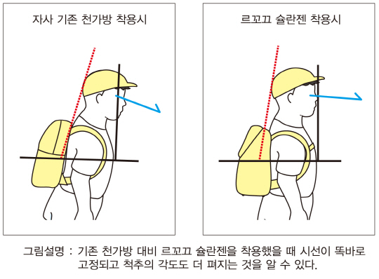 우리들 병원 의료진은 "가방을 매지 않았을 때 신체 밸런스와 같은 조건에 부합하는 가방이 좋다고 할 수 있다. 새로 고안된 르꼬끄의 슐란젠은 어깨끈의 위치를 바꿈으로써 가방 뒤쪽이 아래로 쳐지는 것을 방지하고, 앞쪽의 스트랩을 통해 무게가 앞쪽으로 쏠리는 현상을 방지할 수 있어 평상시와 비슷한 안정적인 자세 유지에 도움을 준다"라고 전했다.