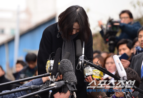 조사위원회에 출두해 사죄하고 있는 조현아 전 부사장. 송정헌 기자 songs@sportschosun.com/2014.12.12