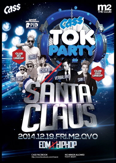 이날 파티는 올 한해 가장 인기 있는 래퍼로 손꼽히는 산이와 버벌진트의 힙합무대를 시작으로 화려한 퍼포먼스와 수준급 디제잉으로 인기를 끌고 있는 디제이(DJ) 엉클, 춘자, 원투가 출연해 파티를 찾은 클러버들과 소통할 예정이다.