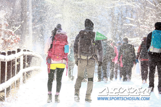 북쪽인 양주시 교현 우이령입구에서 들머리를 잡았다. 미리 신청한 인원만 다닐 수 있는 곳이라 다른 북한산 지역과 달리 한적하다. 길을 접어들자 아무도 밟지 않는 신설이 이곳저곳에 쌓여 있다. '뽁뽁' 소리가 정겹게 들렸다.
