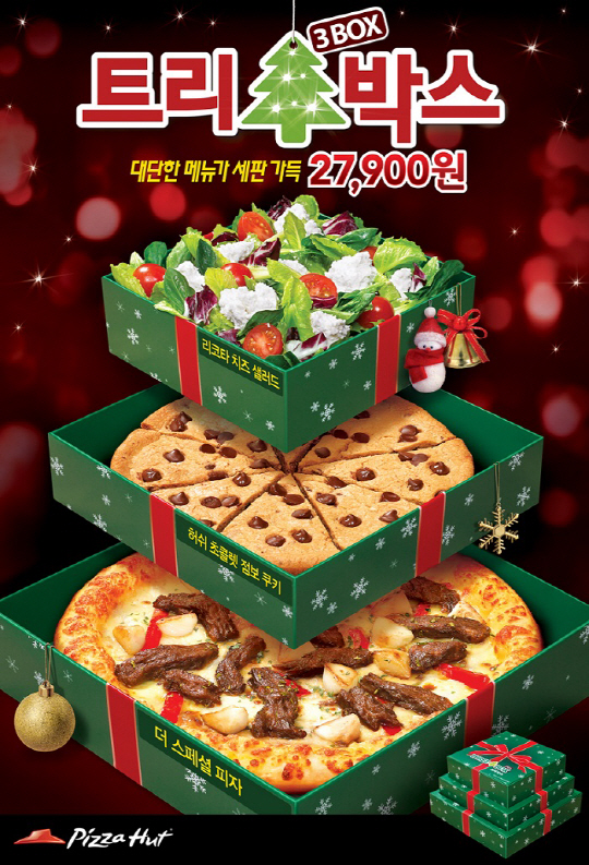 재미와 즐거움을 주는 한국 피자헛(www.pizzahut.co.kr, 대표 이승일)이 겨울 시즌 신메뉴 '트리박스'(THREE BOX)에 선택 메뉴로 '허쉬 초콜릿 점보 쿠키'를 추가한 '트리박스 쿠키 스페셜'을 출시했다.