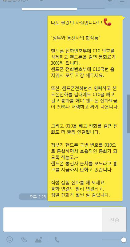 '010 괴담'은 휴대전화 식별번호 010을 빼고 휴대전화를 걸면 요금이 할인된다는 주장이다.