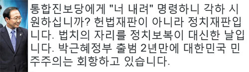 노회찬, 통합진보당 해산 심판에 "각하 '너 내려' 명령…민주주의 회항"