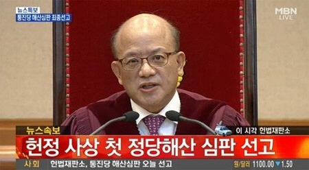 헌법재판소, 통합진보당 해산심판 결과 발표