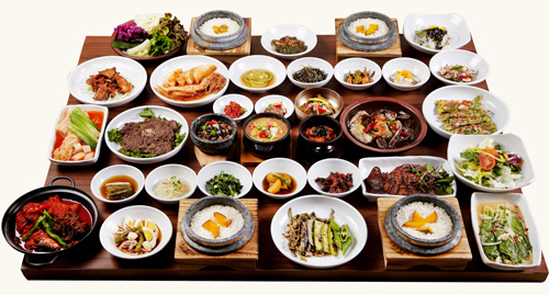 한상차림 메뉴는 고기-생선류,장류,찌개류,장아찌류,나물류,젓갈류,볶음-조림류,김치류,기타류,후식류를 포함하여 30여가지의 찬이 나올 만큼 빈틈이 보이지 않는 구성이다.