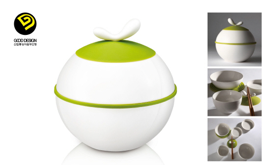 또한 큰 식기 안에 작은 식기를 포개어 순서대로 쌓으면 완벽한 구(球) 형태가 되는 일체형 디자인을 적용했으며, 전자레인지 또는 냉장고에서 그릇의 덮개 등으로 사용할 수 있는 실리콘 냄비 받침과 머그 뚜껑으로도 사용 가능한 수저받침 등 기능과 디자인이라는 두 마리 토끼를 동시에 잡았다.