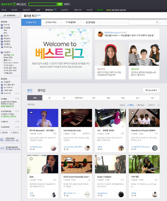 네이버㈜(대표 이사 김상헌)가 23일 음악 창작자를 위한 오픈 플랫폼인 뮤지션리그에서 실력파 뮤지션으로 구성된 '베스트리그'를 오픈했다고 밝혔다.