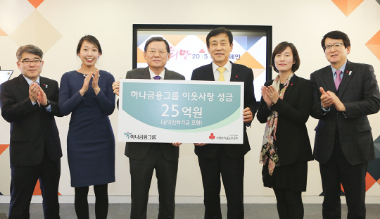 하나금융그룹(회장 김정태, www.hanafn.com)은 사회적 책임을 다하고 소외된 이웃과 함께하는 나눔금융을 실천하기 위해 23일 사회복지공동모금회(회장 허동수, www.chest.or.kr)에 이웃돕기 성금 25억 원을 기탁했다.