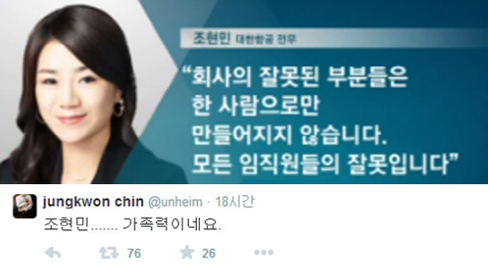 진중권 일침, 조현민 "모든 임직원 잘못" 반성문 논란에…"가족력이네"