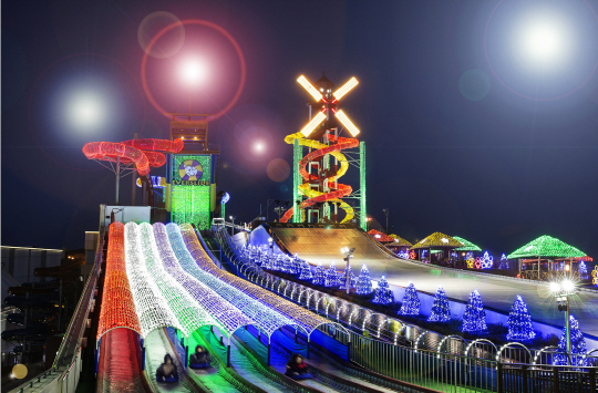 낮에만 이용할 수 있었던 눈썰매도 화려한 조명 옷을 갈아입고 레인보우슬라이드로 재탄생 했다. 화려한 조명 빛을 타고 내려오는 짜릿한 속도에서 보는 즐거움 뿐만 아니라 타는 재미까지 느낄 수 있다. 스노파크에 입장하면 오후 5시 30분~10시 무료로 이용할 수 있다.