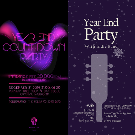 서울 남산에 위치한 도심 속 리조트, 반얀트리 클럽 앤 스파 서울(Banyan Tree Club & Spa Seoul)이 2015년을 특별하게 맞이할 수 있는 카운트다운 파티를 31일 페스타동 2층 모리엔과 호텔동 1층 크리스탈 볼룸에서 각각 개최한다.