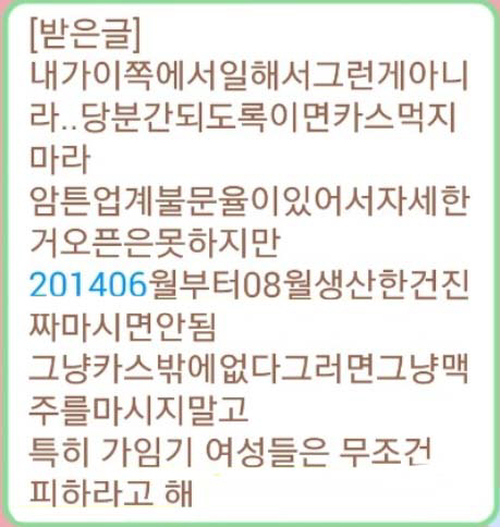 경찰에 따르면 이씨 등은 지난 6월 24일 휴대전화로 기자 및 지인 등 11명에게 "6월 18일에 생산된 카스맥주 중 변질된 제품이 전국적으로 유통되고 있다", "어른들이 드시면 하늘로 빨리 간다"는 내용의 문자메시지를 발송한 혐의를 받고 있다. 또한 이씨는 지점 전체 직원들이 실시간으로 공유하는 밴드 등 SNS에 카스맥주와 관련한 악의적인 소문을 퍼뜨리도록 지시했다.